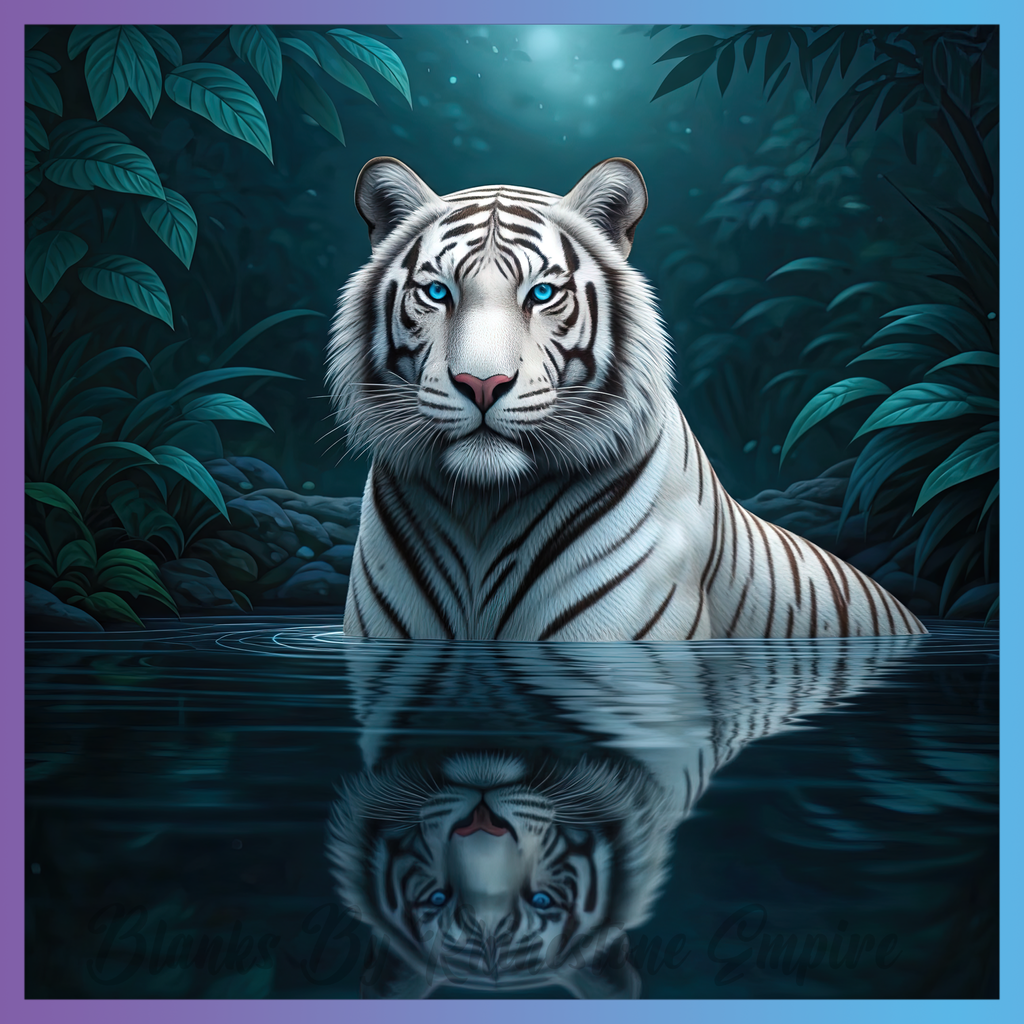 Theme: Tiger with white, water, reflection, jungle.