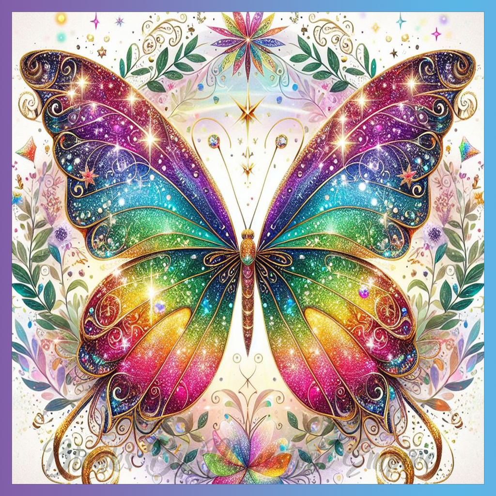 Theme: Butterfly with colorful, sparkling, floral, ornate.