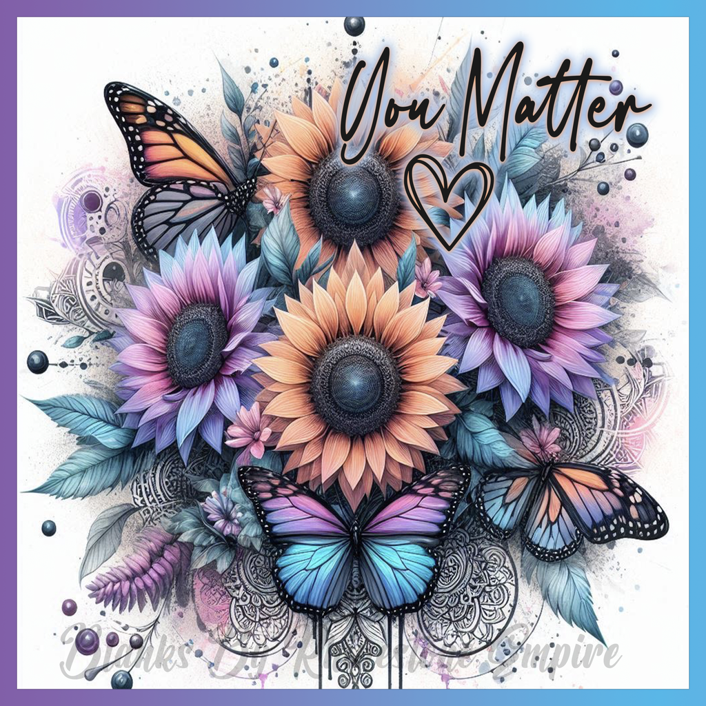Theme: Butterfly with flowers, sunflowers, colorful, abstract.