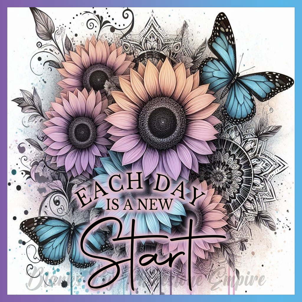 Theme: Sunflower with butterflies, mandala, floral, colorful.