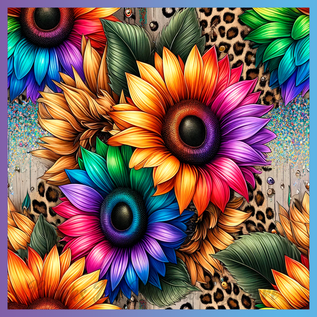 Theme: Flower with sunflower, colorful, leopard, pattern.