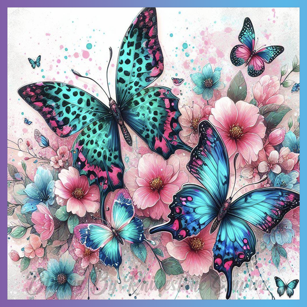 Theme: Butterfly with flowers, colorful, nature, artistic.