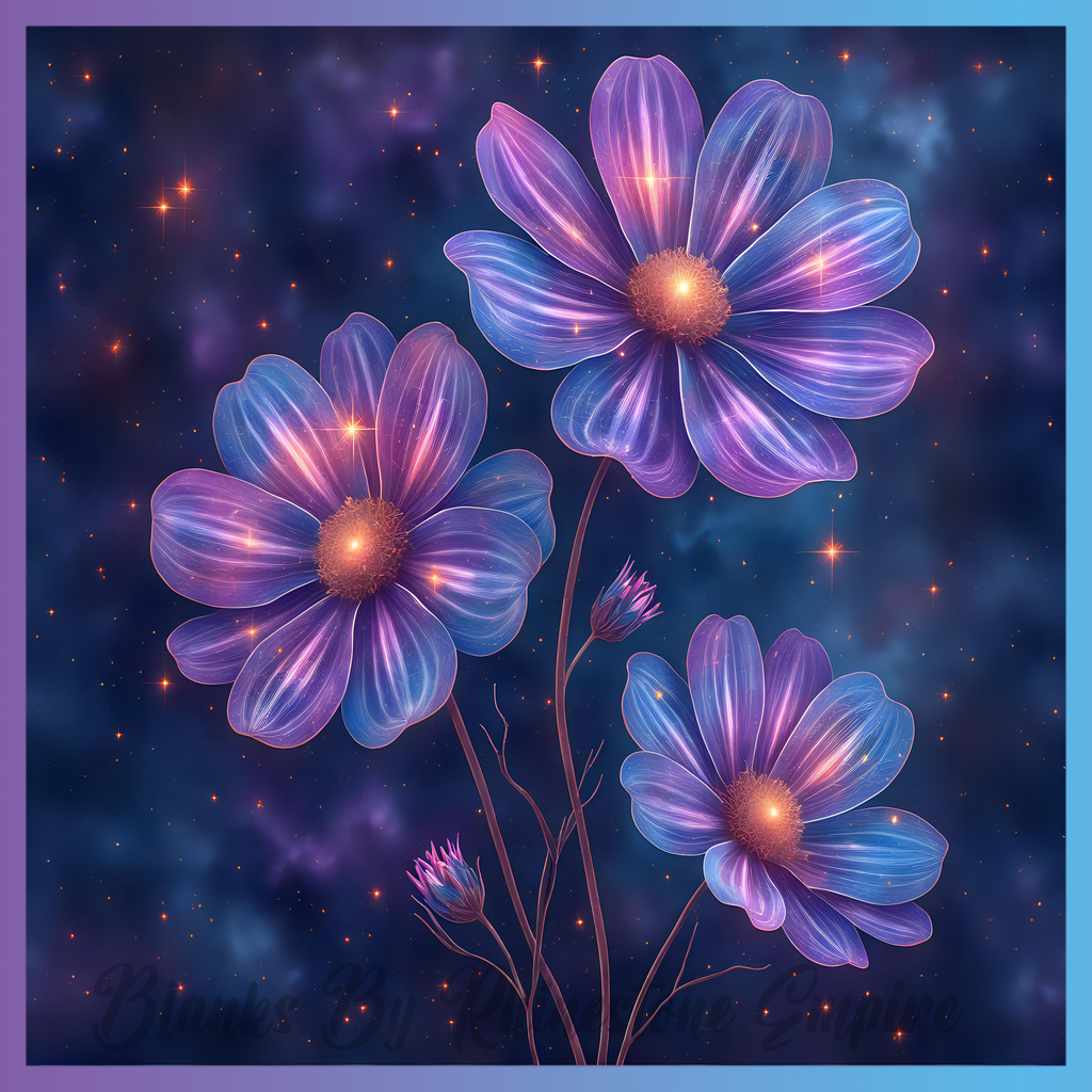 Theme: Flower with glowing, purple, space, stars.