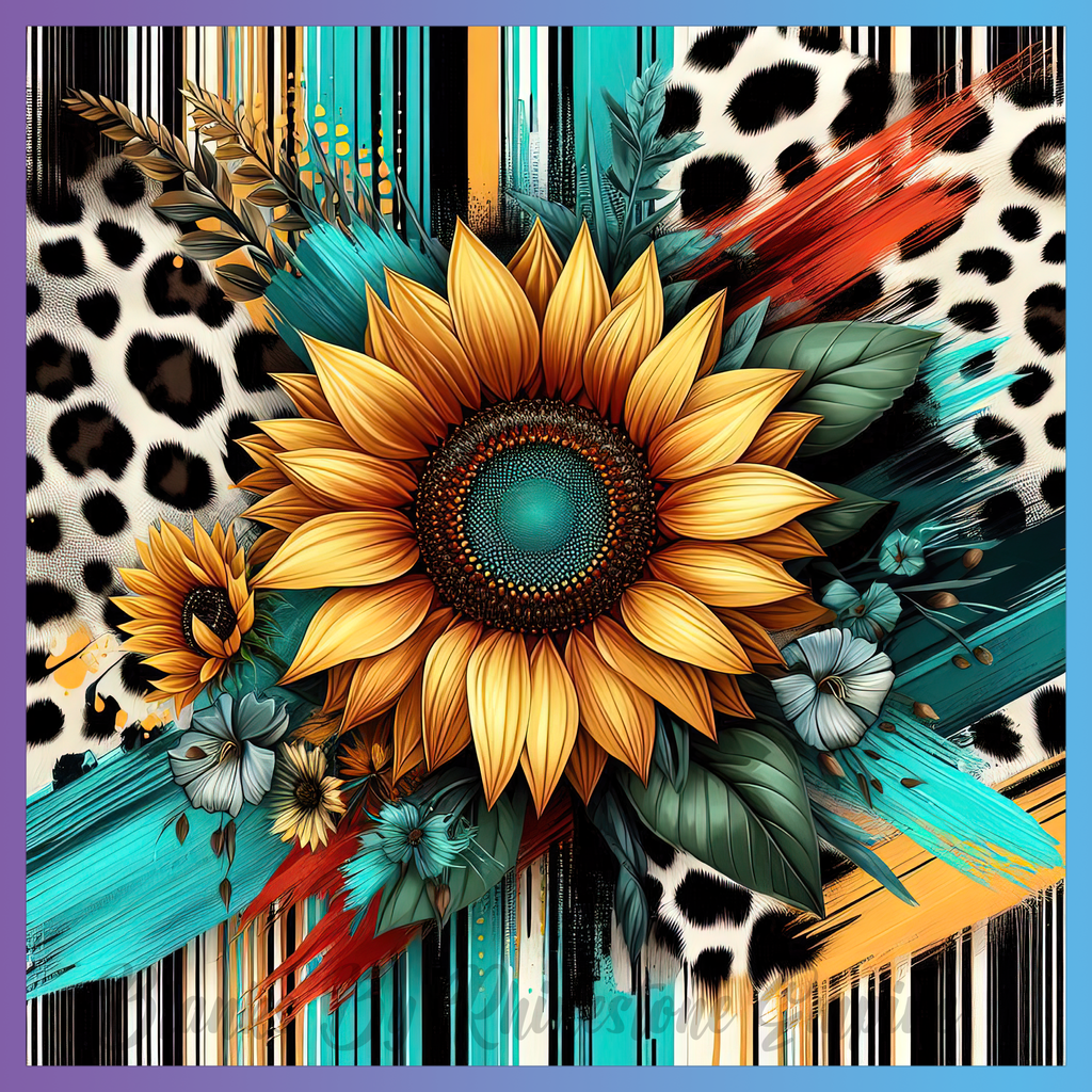 Theme: Sunflower with colorful, abstract, leopard print, floral.