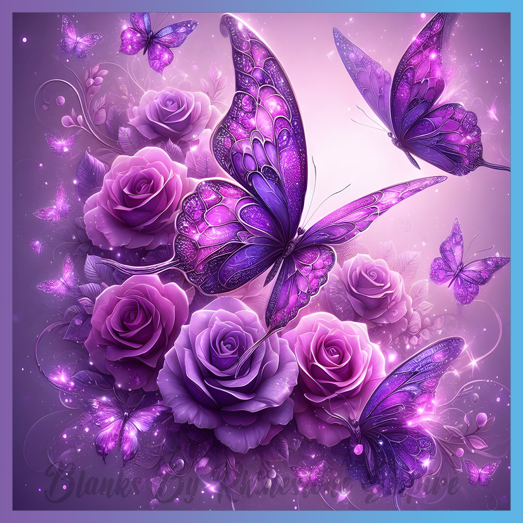 Theme: Butterfly with roses, purple, flowers, glitter.