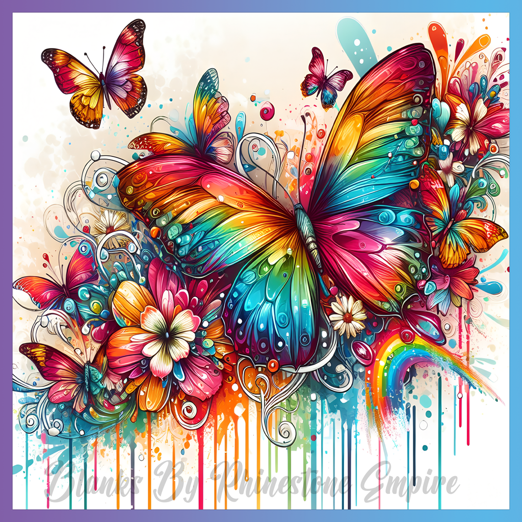 Theme: Butterfly with colorful, flowers, abstract, art.