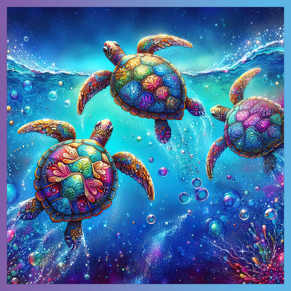 Theme: Turtle with colorful, underwater, bubbles, coral.