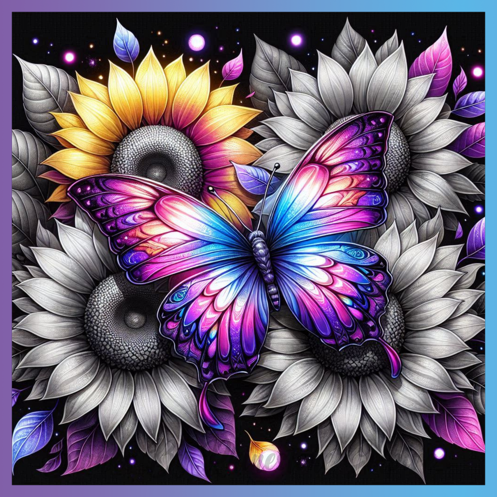 Theme: Butterfly with sunflowers, colorful, vibrant, detailed.