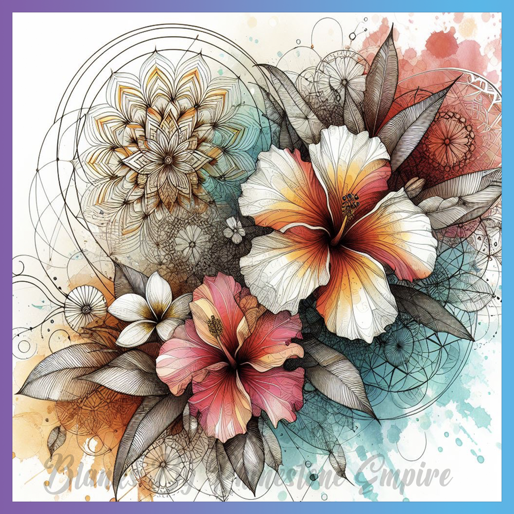 Theme: Flower with hibiscus, geometric, colorful, illustration.