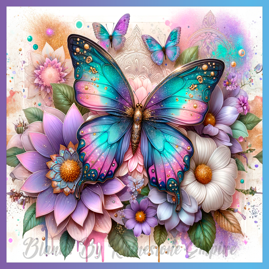 Theme: Butterfly with flowers, colorful, detailed, nature.