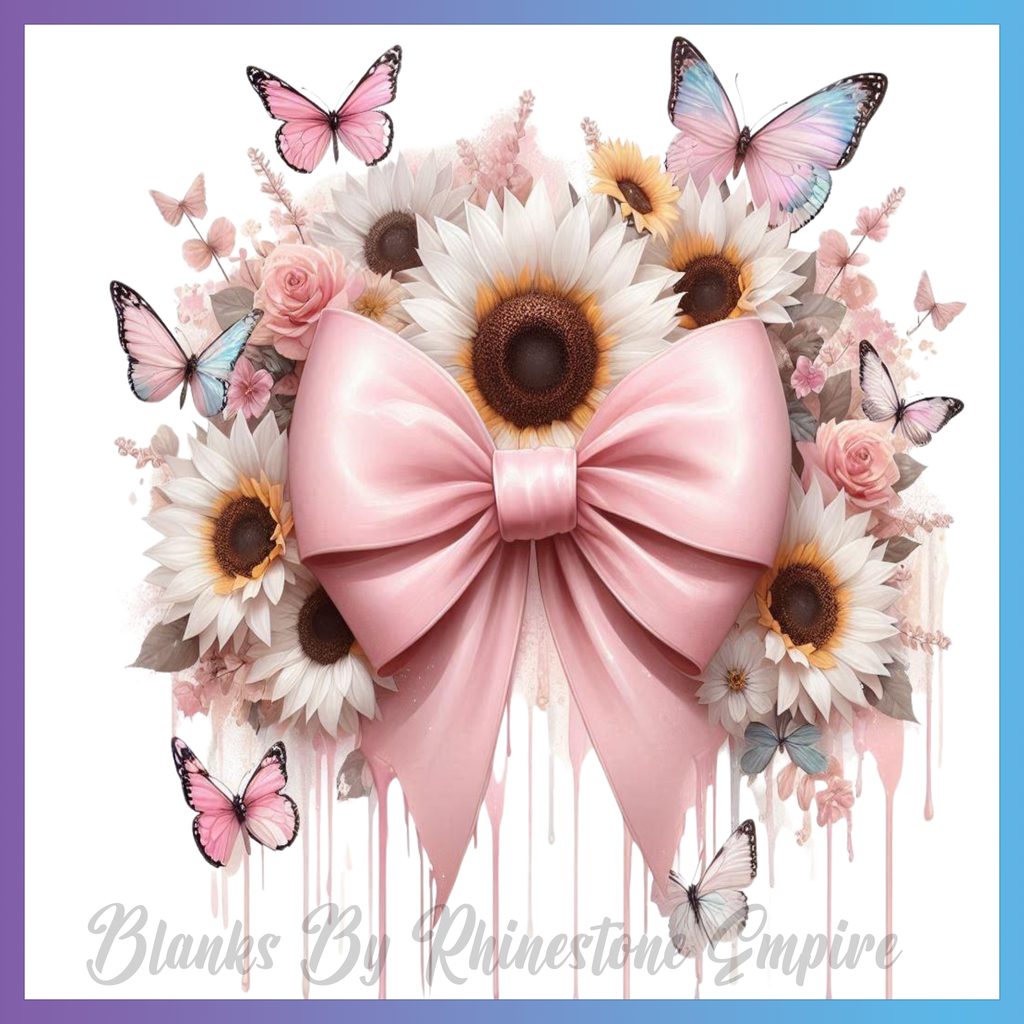 Theme: Bow with flowers, sunflowers, butterflies, pink.