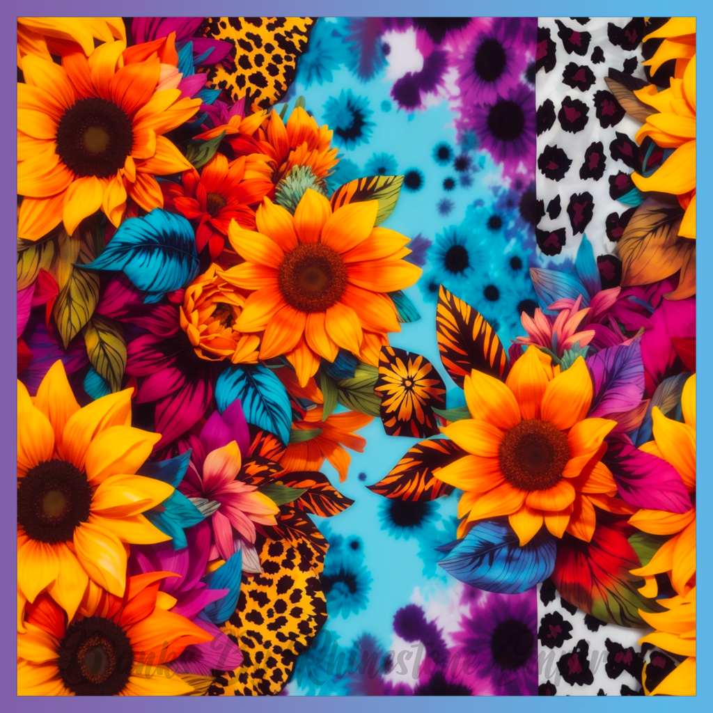 Theme: Flower with sunflower, vibrant, colorful, pattern.