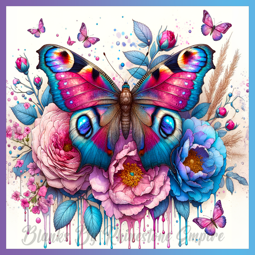 Theme: Butterfly with flowers, colorful, nature, pink.
