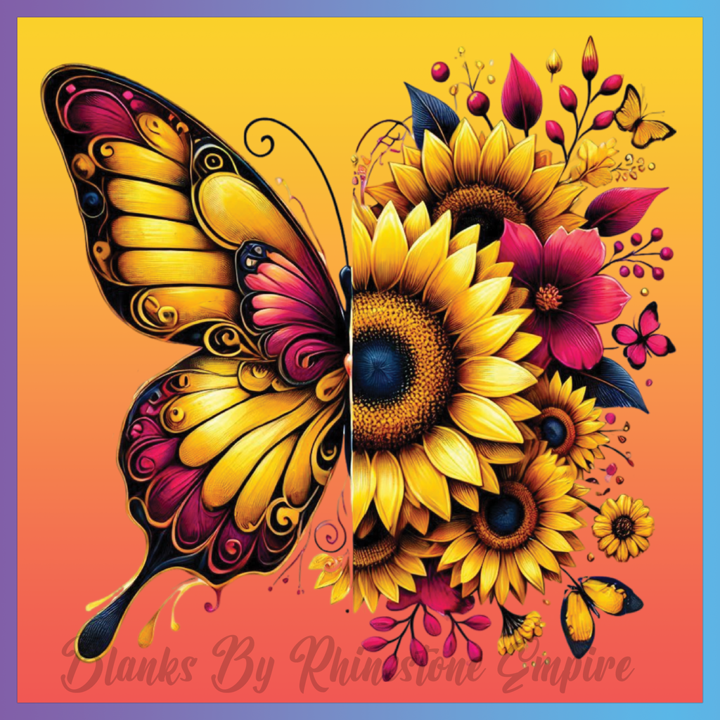 Theme: Butterfly with sunflowers, flowers, colorful, nature.