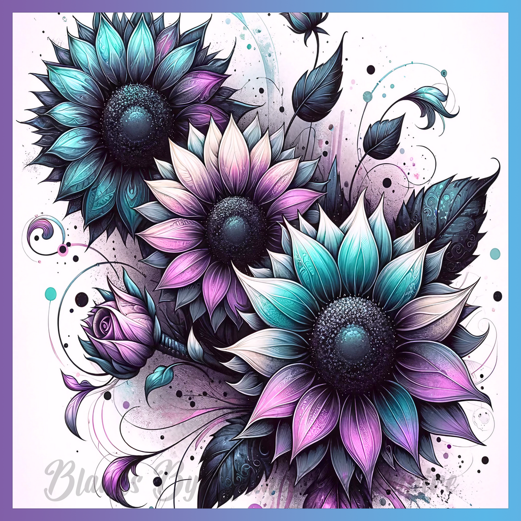 Theme: Flower with sunflower, rose, colorful, abstract.