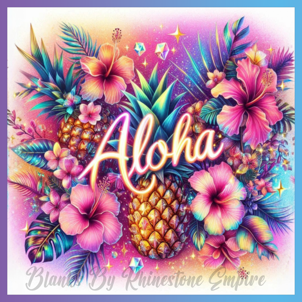 Theme: Pineapple with flowers, tropical, colorful, leaves.