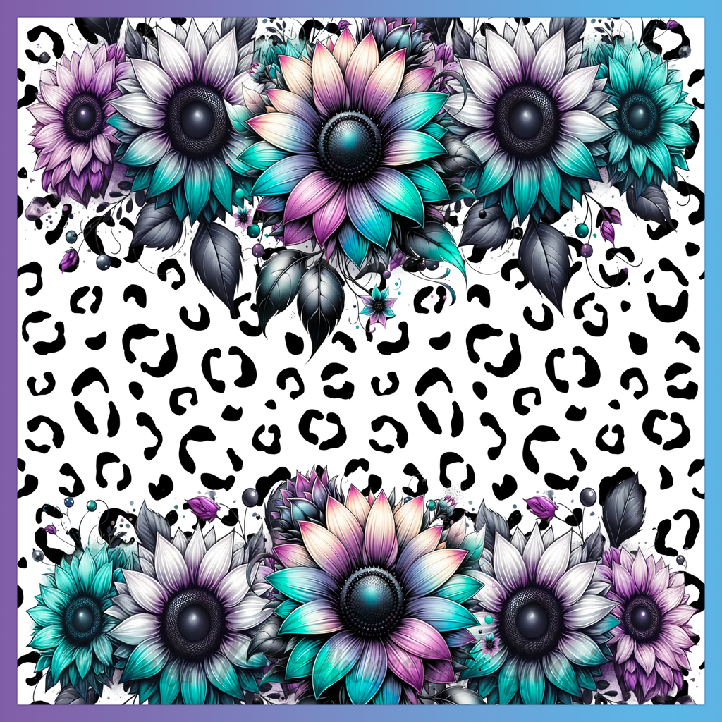 Theme: Flower with sunflower, leopard print, colorful, floral.
