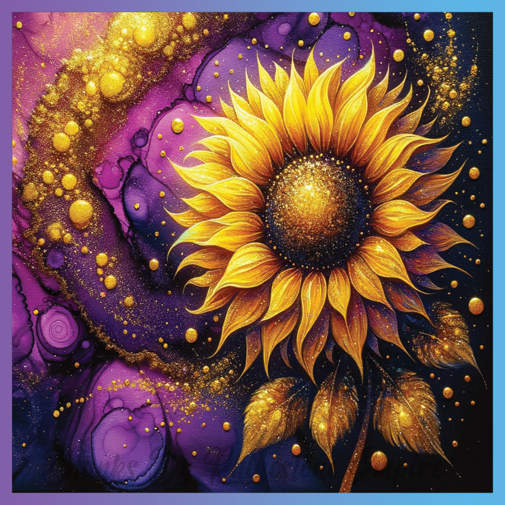 Theme: Sunflower with galaxy, purple, gold, space.