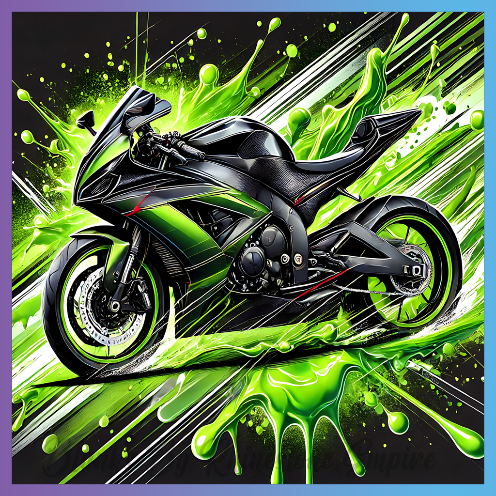 Theme: Motorcycle with black, green, splash, abstract.