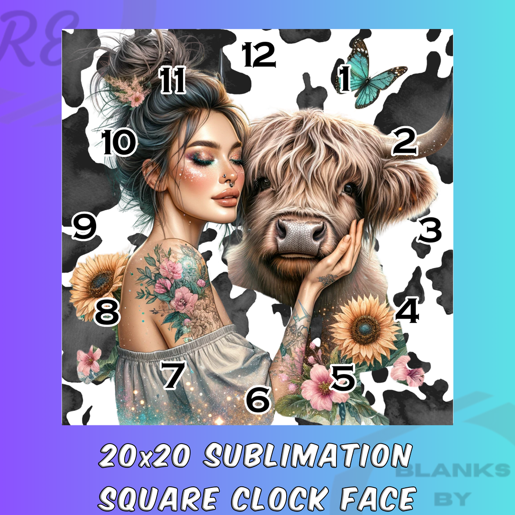 Check out this Elegant Woman Square Clock Face Design! Charming Colors, And a Joyful Cow design