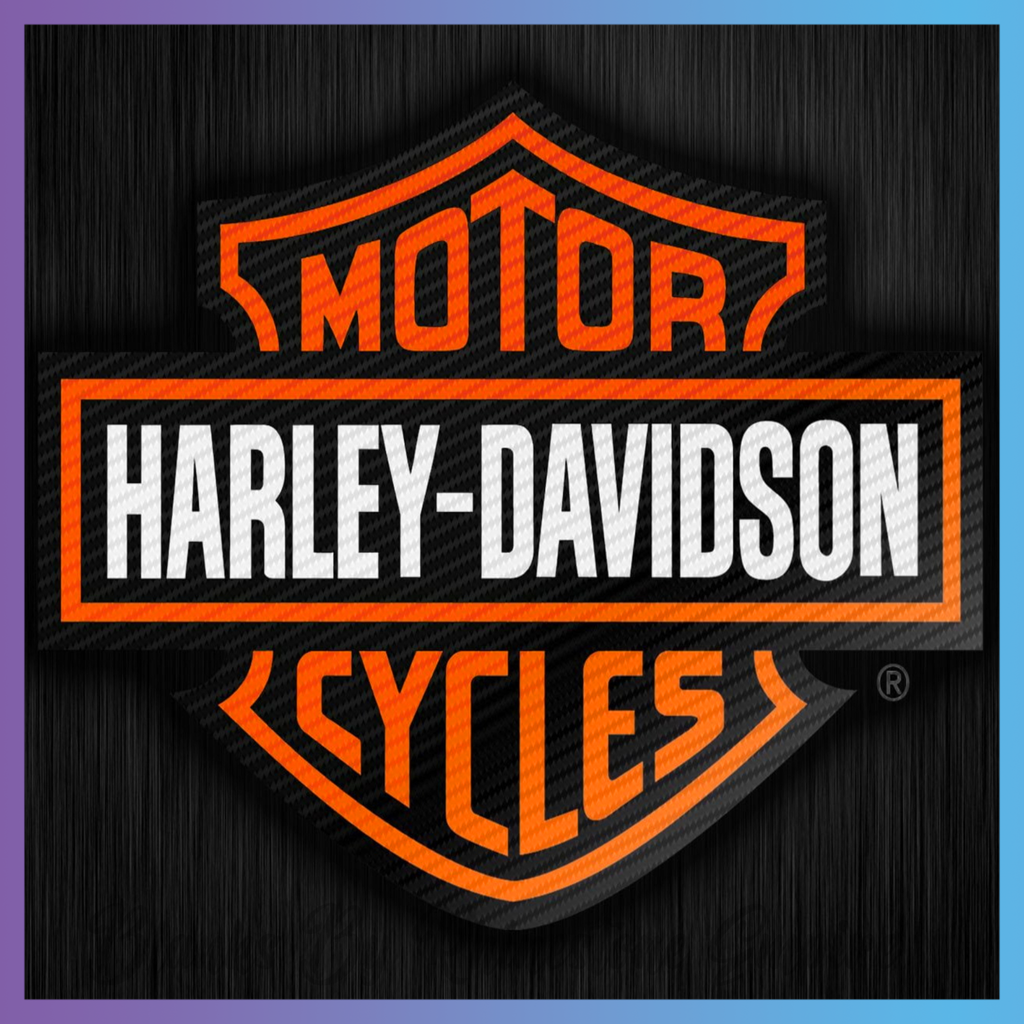 Theme: Logo with motorcycle, black, orange, design.
