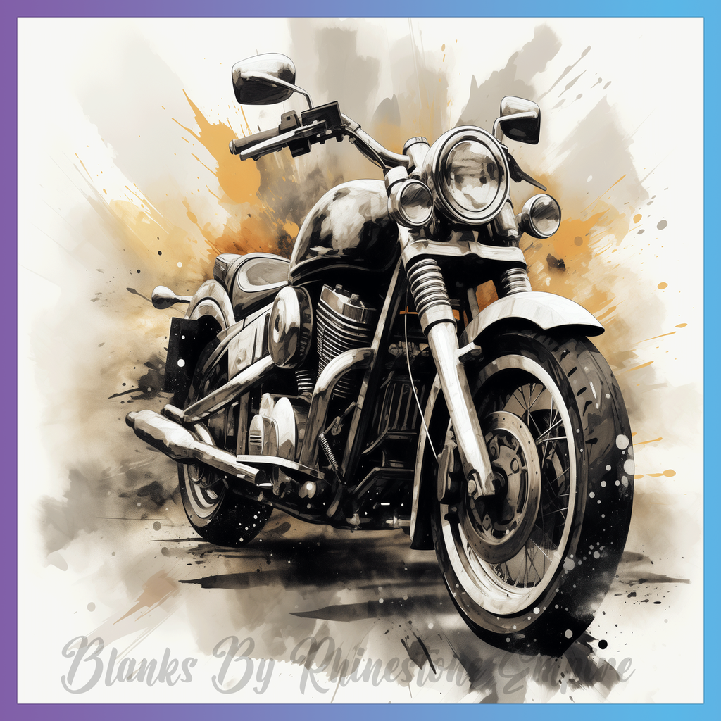 Theme: Motorcycle with art, splash, metallic, vintage.