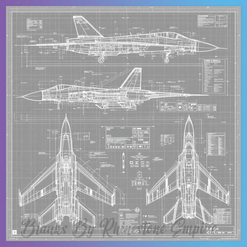 Theme: Aircraft with blueprint, technical, design, schematic.