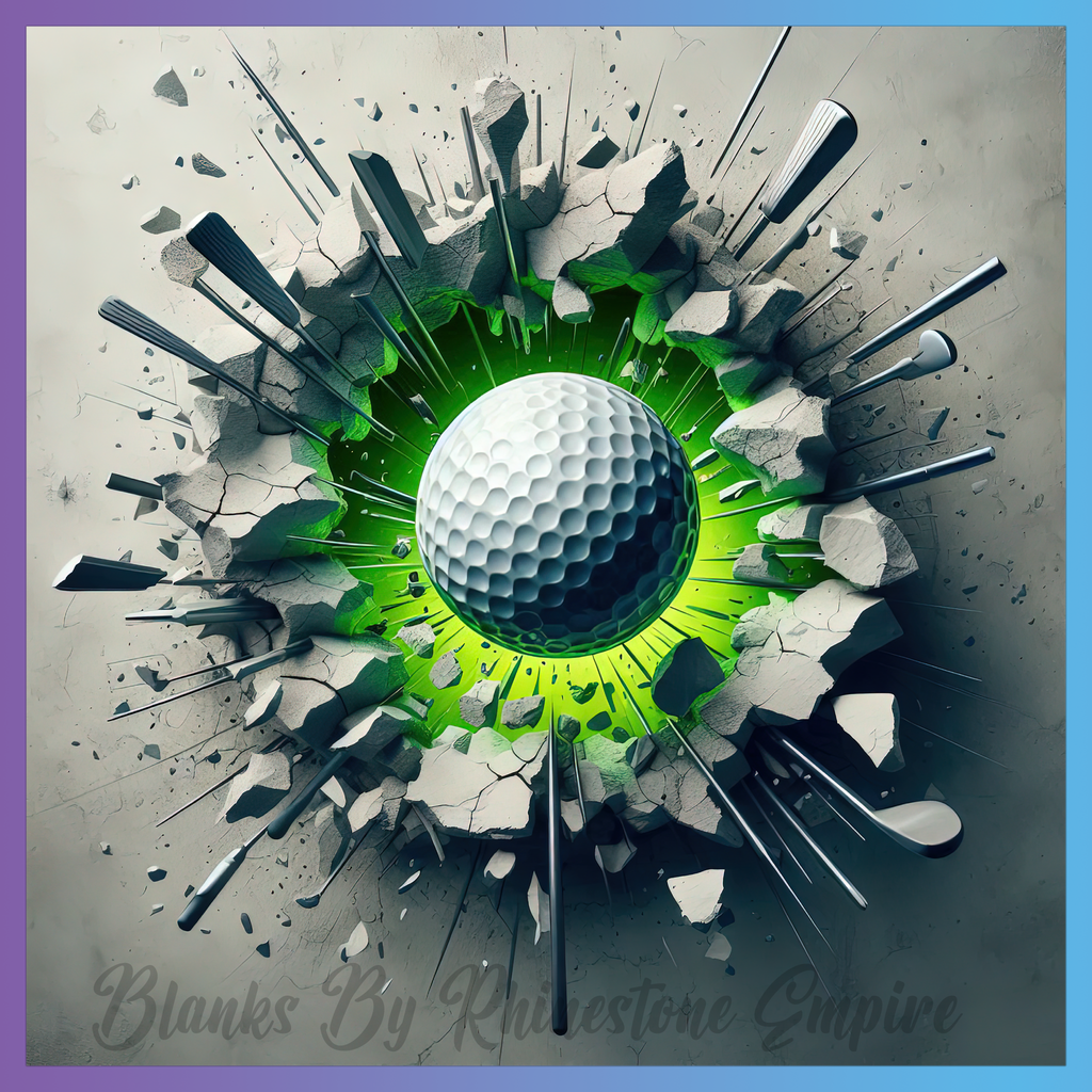 Theme: Ball with golf, explosion, debris, green.