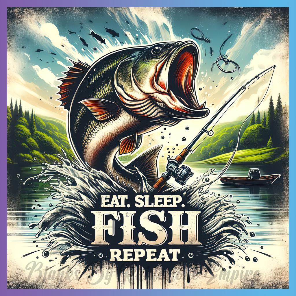 Theme: Fish with bass, fishing, water, waves.
