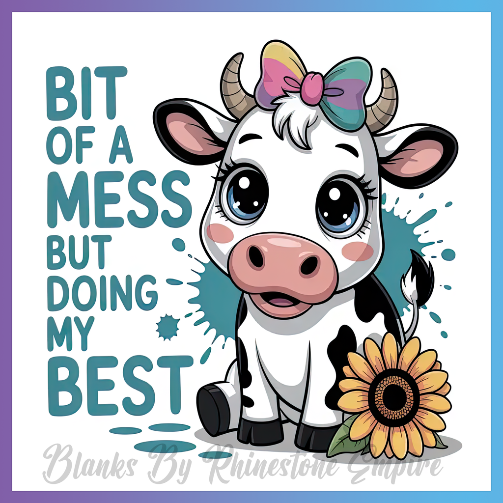Theme: Cow with cute, cartoon, flower, messy.