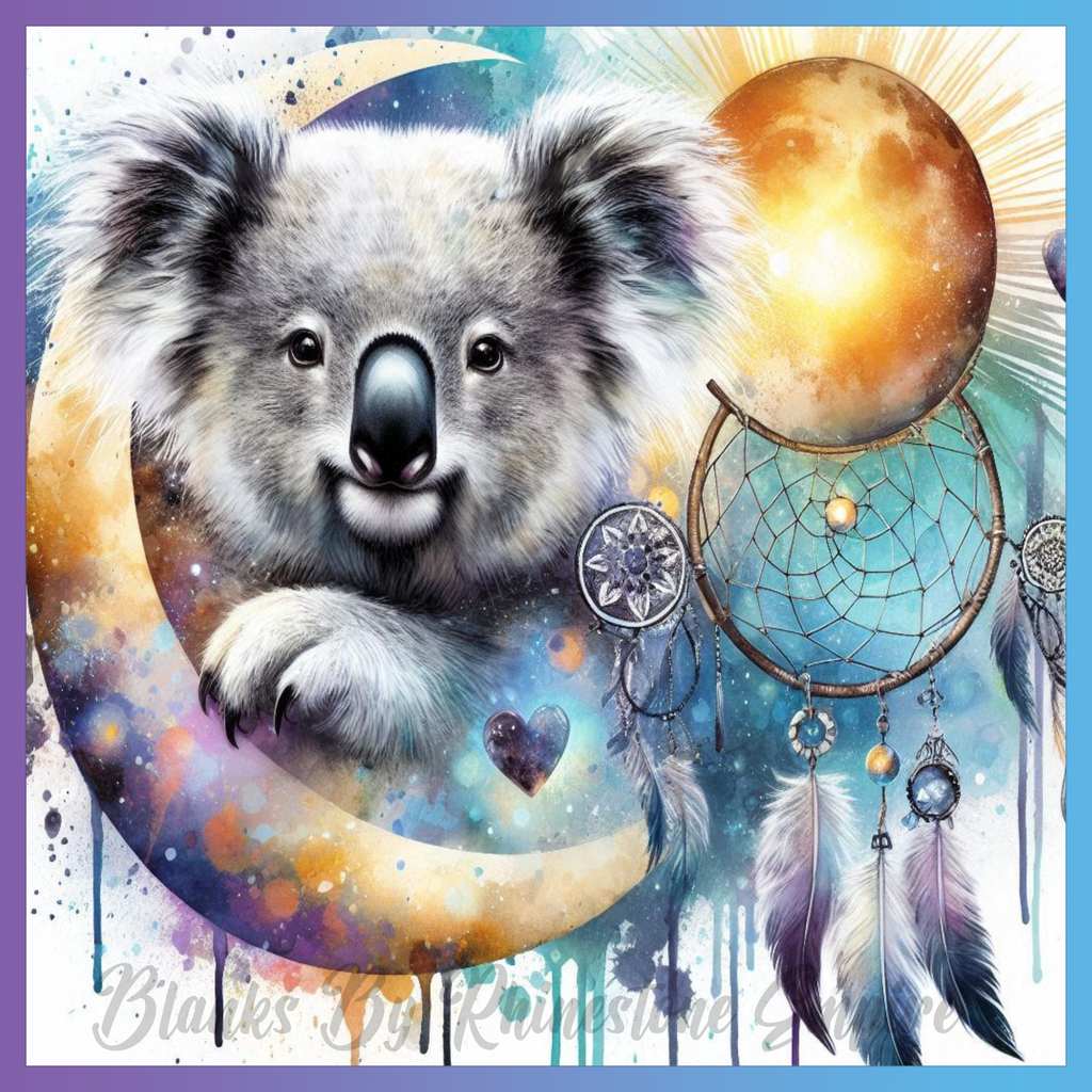 Theme: Koala with moon, dreamcatcher, colorful, abstract.