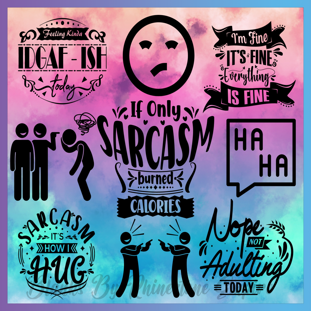 Theme: Sarcasm with text, quotes, humor, illustration.