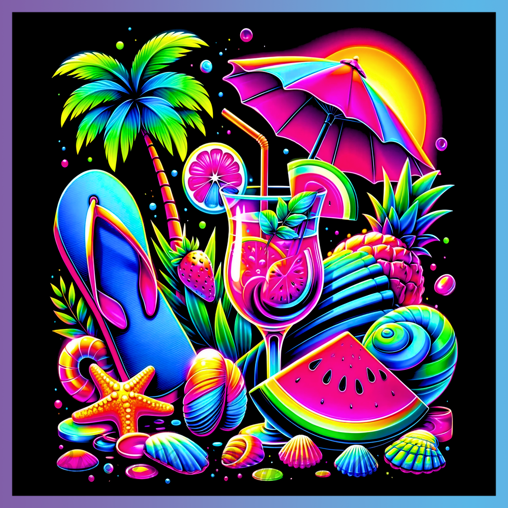 Theme: Drink with tropical, beach, flip-flop, watermelon.