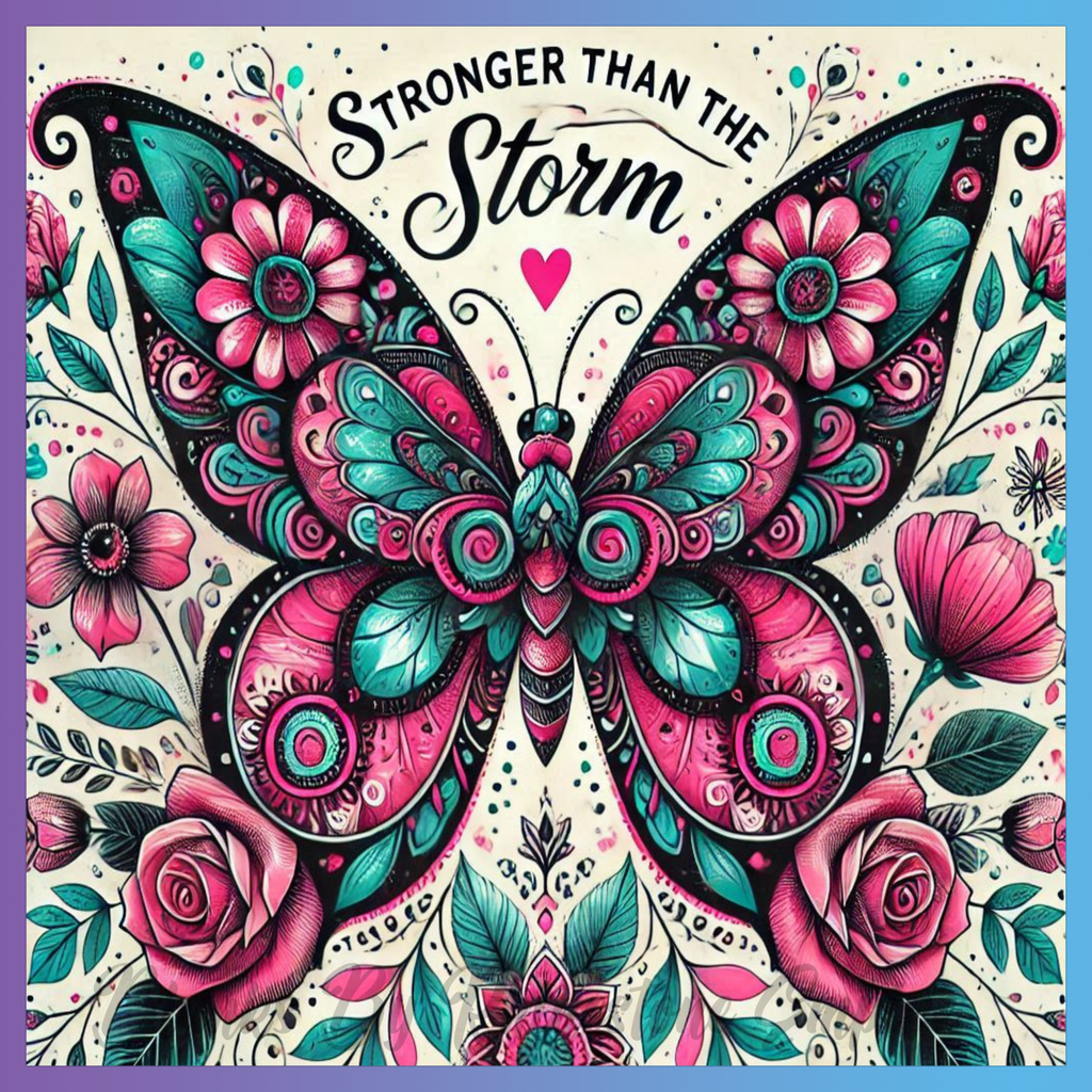 Theme: Butterfly with flowers, colorful, ornate, decorative.