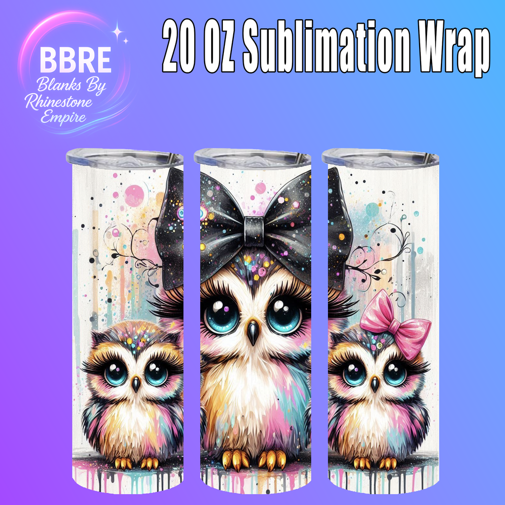 Check out this Bold Owl 20 OZ Sublimation Wrap! With Snazzy Colors and a detailed design.