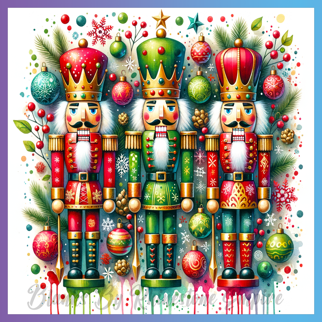 Theme: Nutcracker with colorful, ornaments, Christmas, festive.