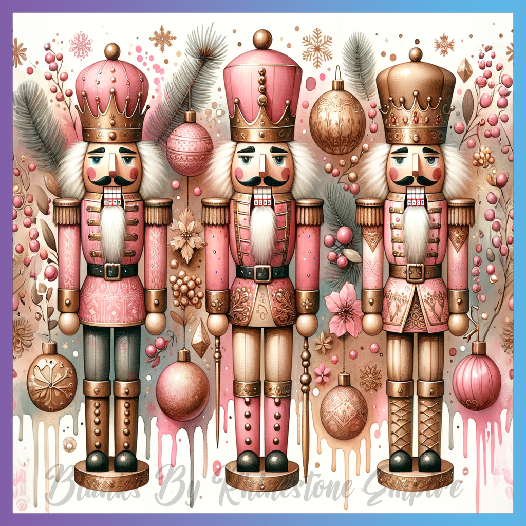 Theme: Nutcracker with ornaments, pink, gold, flowers.