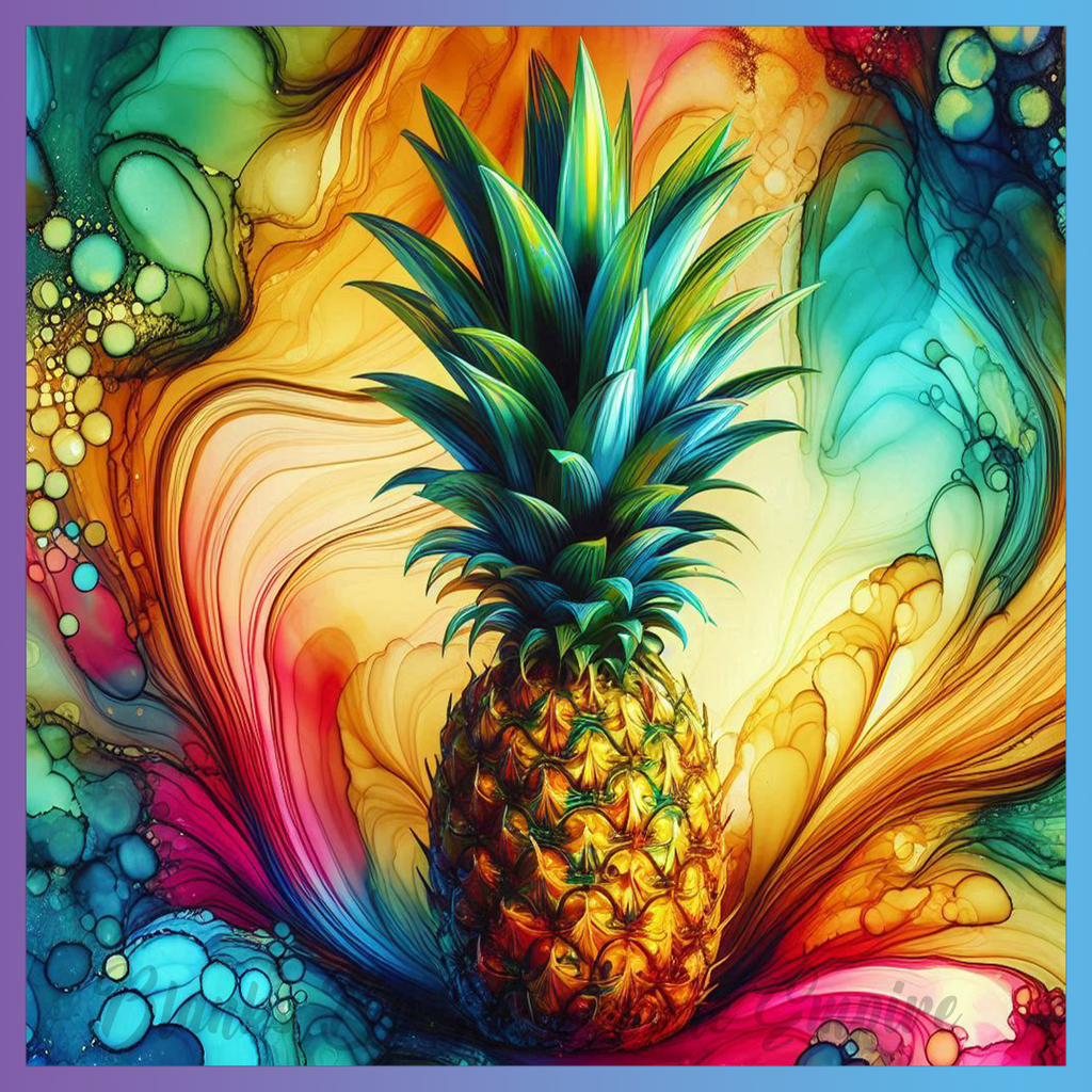 Theme: Pineapple with colorful, abstract, swirls, vibrant.