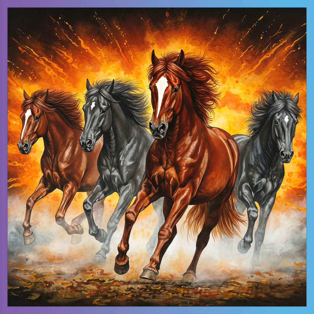 Theme: Horse with fire, motion, dynamic, powerful.