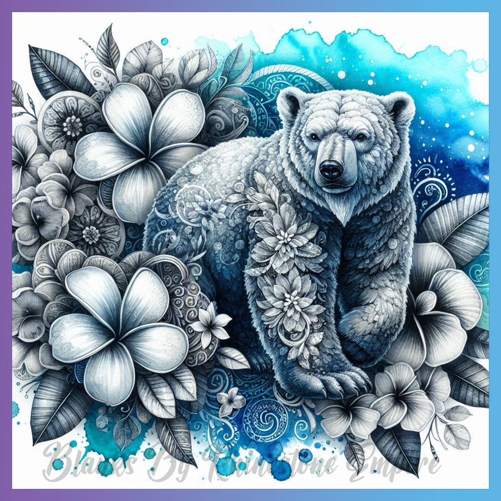 Theme: Bear with flowers, blue, floral, illustration.