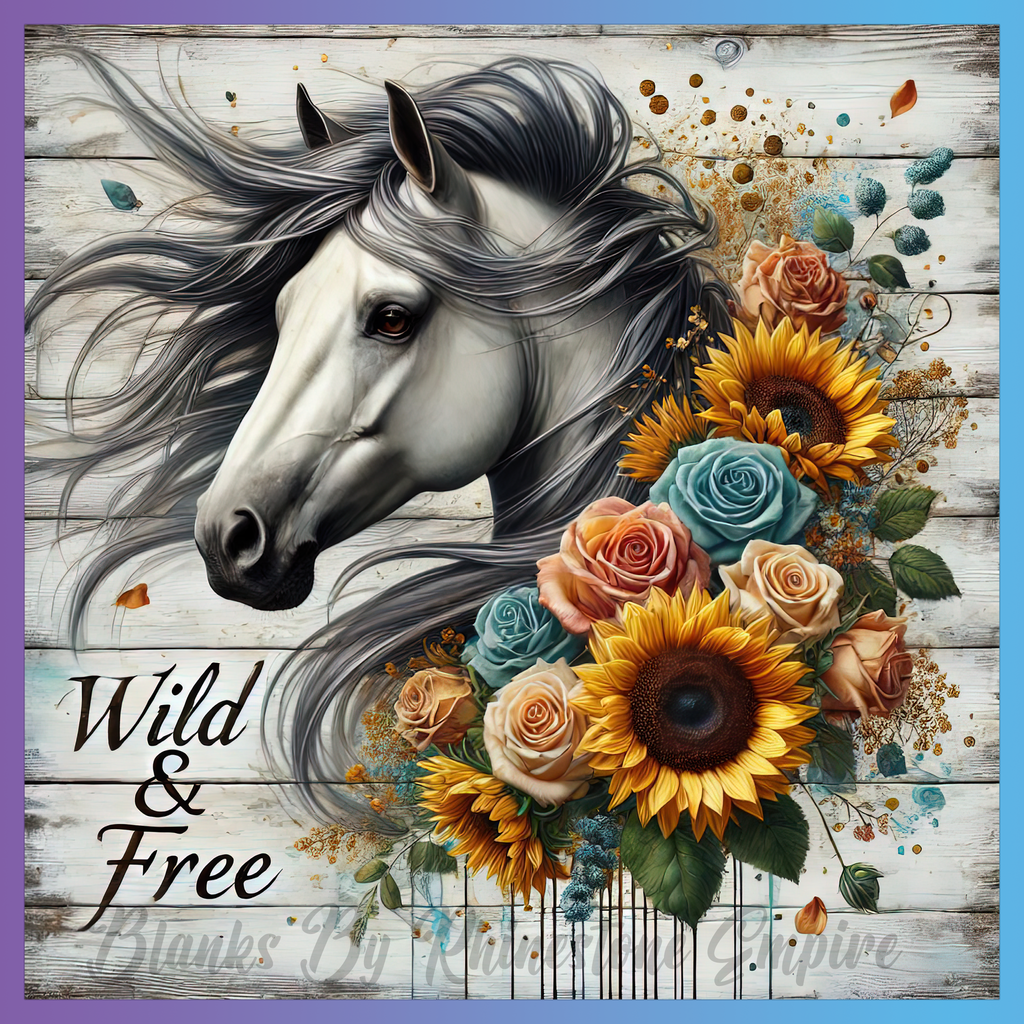Theme: Horse with flowers, sunflowers, wood, wild.