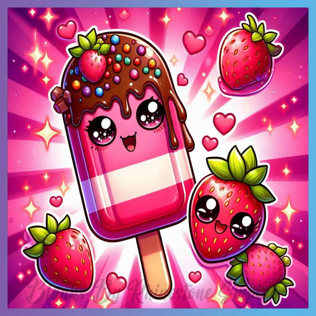 Theme: Popsicle with strawberry, cute, colorful, hearts.