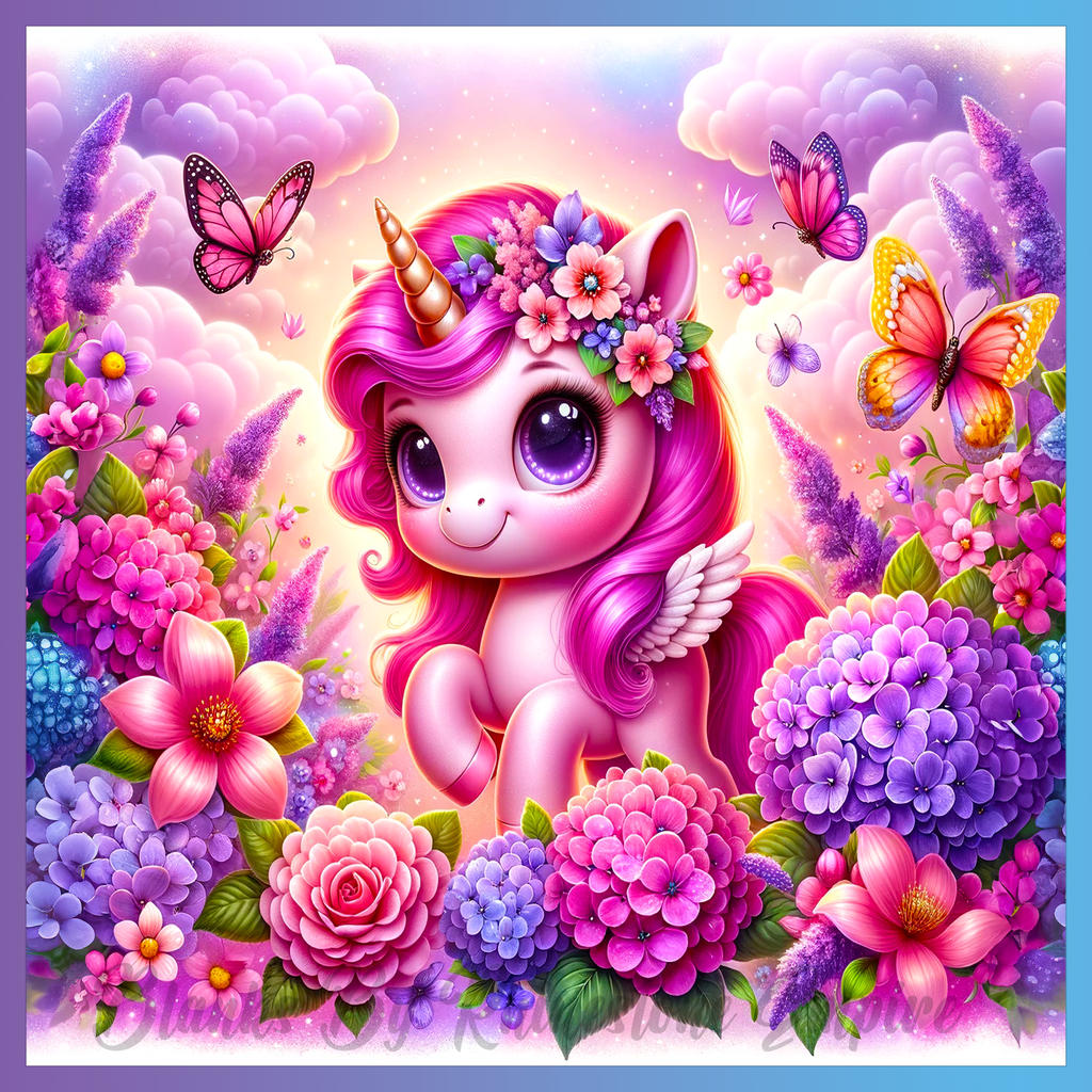 Theme: Unicorn with flowers, butterflies, pastel, cute.