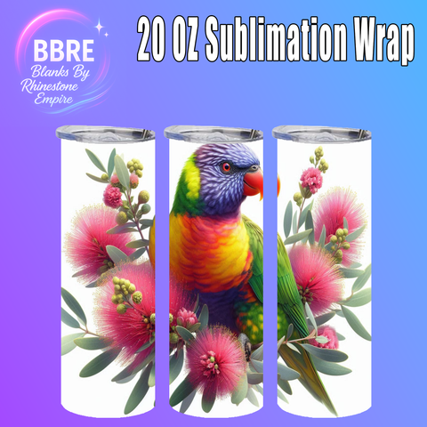 Check out this Electric Parrot 20 OZ Sublimation Wrap! With Vivid Colors and a slick design.