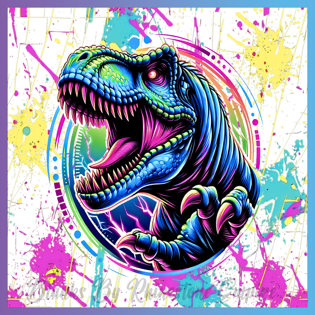 Theme: Dinosaur with colorful, illustration, roaring, abstract.