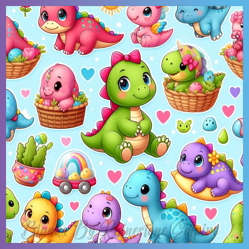 Theme: Dinosaur with cute, colorful, cartoon, background.
