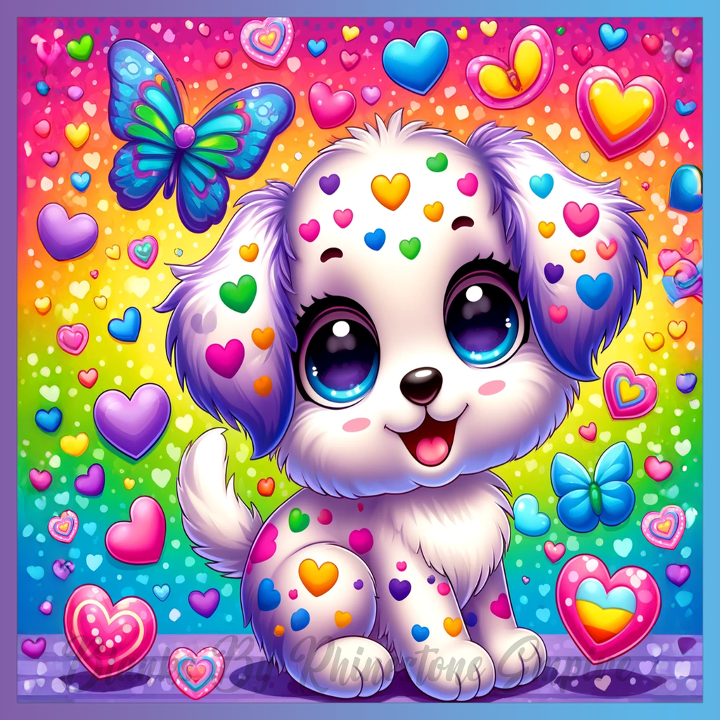 Theme: Puppy with colorful, hearts, butterfly, cartoon.