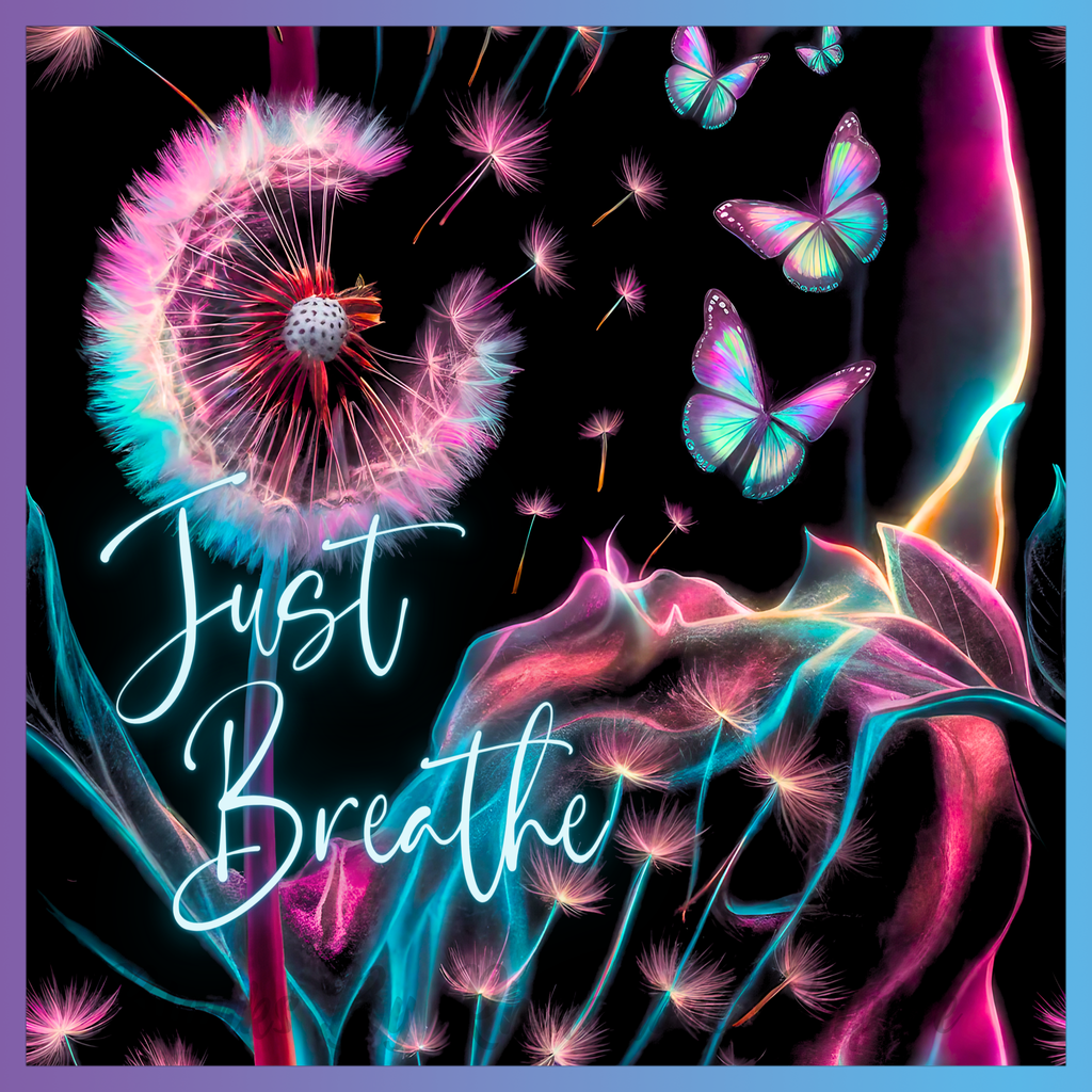 Theme: Dandelion with butterflies, neon, flowers, whimsical.