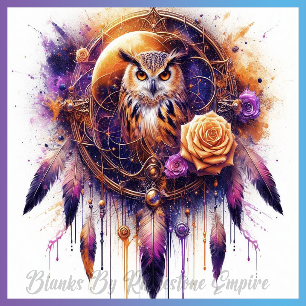 Theme: Owl with dreamcatcher, moon, roses, feathers.