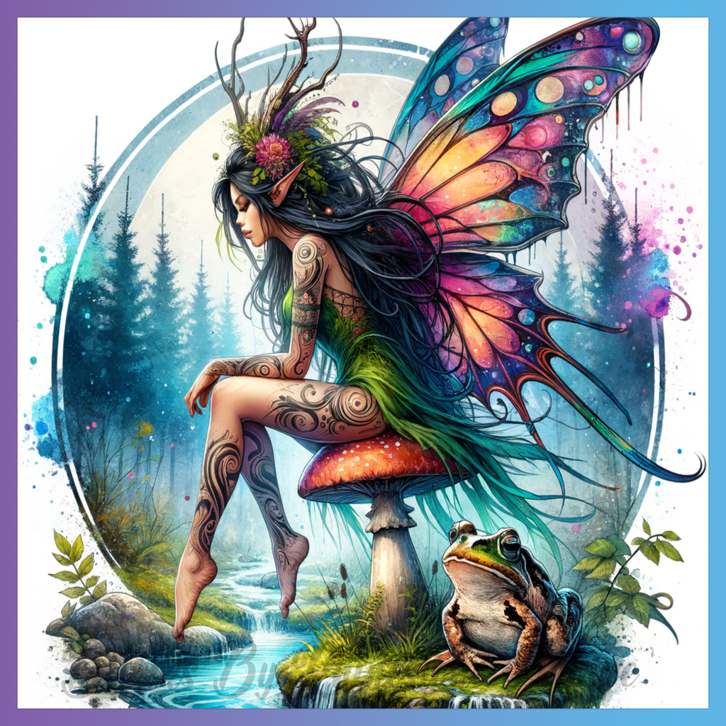 Theme: Girl with fairy, butterfly, tattoo, mushroom.